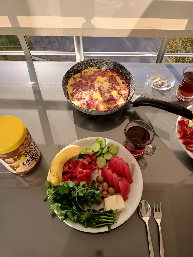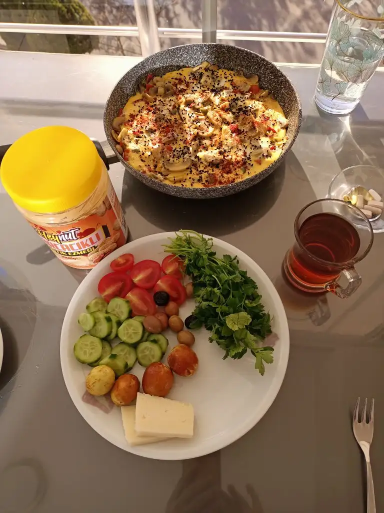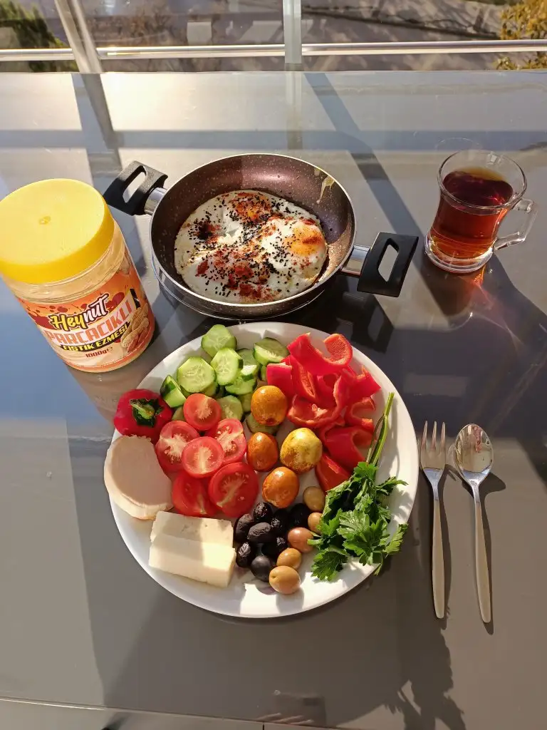 Bugün daha iyi hissettim ve tek öğün yaptım. Soğanlı yumurta ve diğerleri...👌