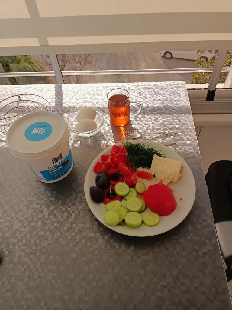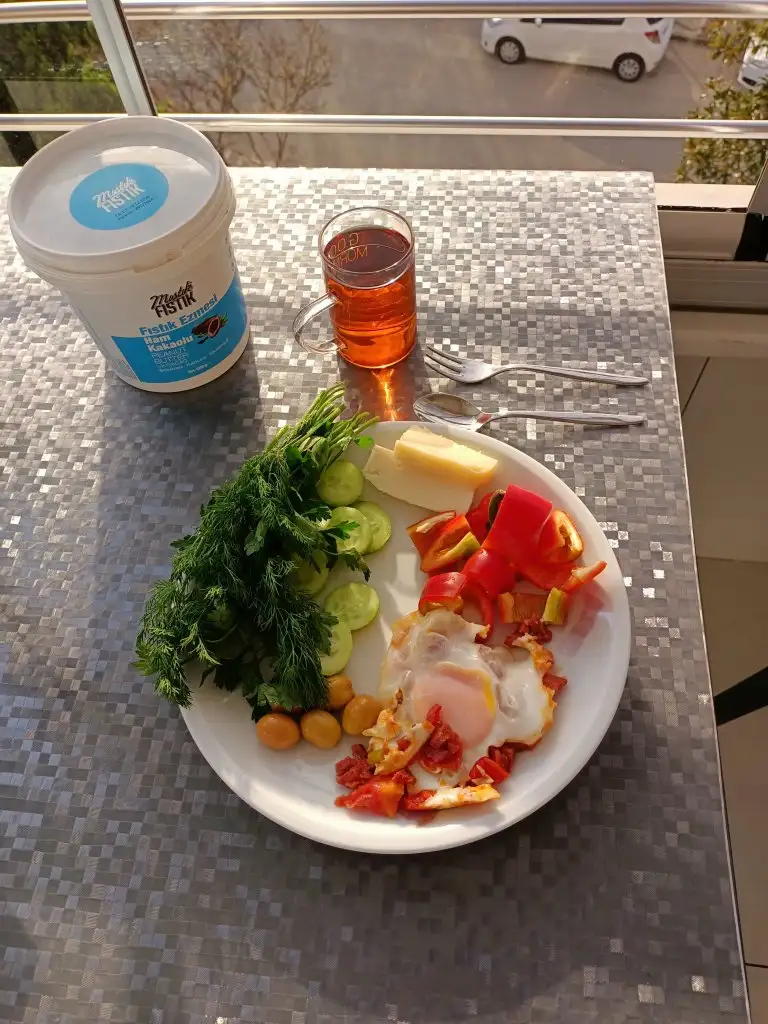 İlk öğünüm saat 10.30 gibi başladı, 11.00 gibi bitti. Fotoğraf çekmeyi unuttum, yine her zamanki gibi bir tabak oldu, oluyor, olacak.😄 O yüzden fotoğrafları ara ara paylaşayım diyorum.