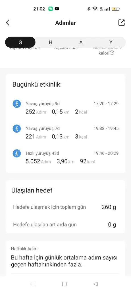 Annem daha iyi görünüyordu, inşallah yuruyuslerime geri döndüm. Konu sadece annem de değil. Bir kaç yıl önce bir sakatlik geçirmiştim ve dizimde hizalanma bozukluğu oluşmuş. O da ön dizde ağrı yapiyor. Ara ara dinlendirmek iyi geliyor.Orta tempo 35 dk kadar yürüdüm, geldim.