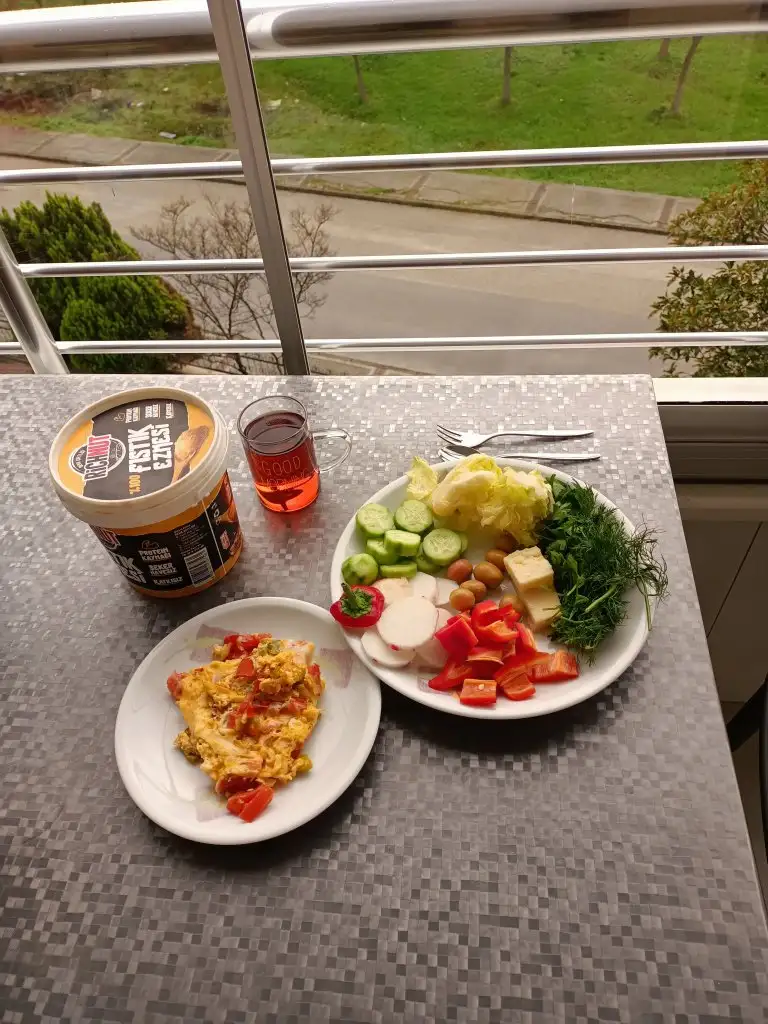Günaydınlar sabah peynirli maydanozlu iki yumurta ve turp yedim. Dün akşam köfte, patates, brokoli ,salata yemiştim bugünde et döner ,salata var .