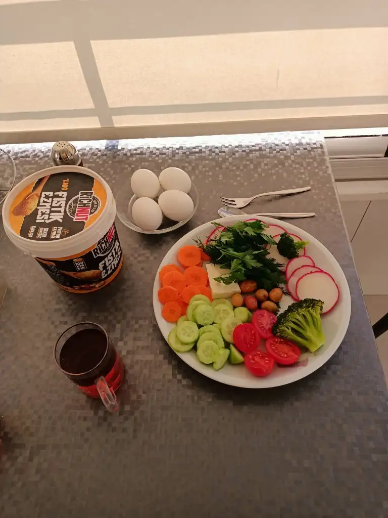 ilk öğün kızım dersim boş geleceğim deyince biraz gecikti. İyi oldu, oruç süresi uzamış oldu. Yumurtanın ikisi benim...
