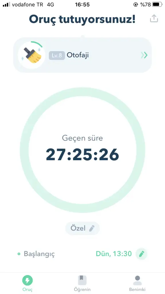 Ben 18 saat açlık 6 saat yemek düzeni uyguluyorum ( yemek aralığı genelde 14.00-20.00) herkes kendine uyanı uygular bana şu karantina günlerinde bu uyuyor şimdilik zamanla değişebilir.