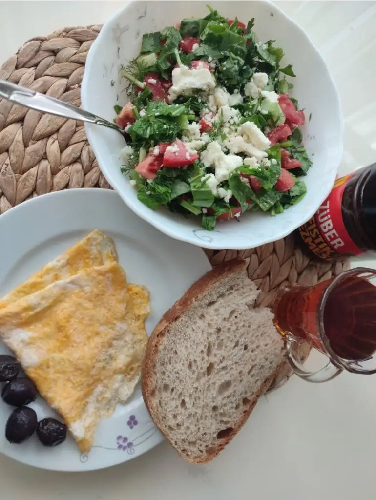 Günaydın kizlar ben de şimdi kendime ayri kahvalti hazirladim ve başlıyorum bol yesillikli salata ileGünaydın kızlar