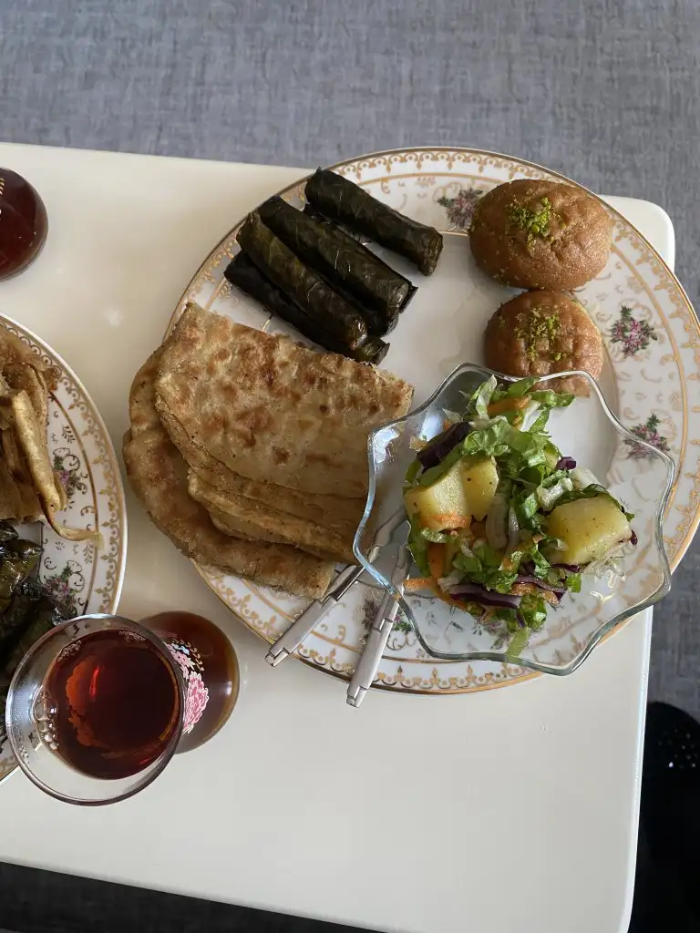 2 dilim fırında patatesli ıspanak, 3 4 kaşık erişte, 2 minik kornişon turşu