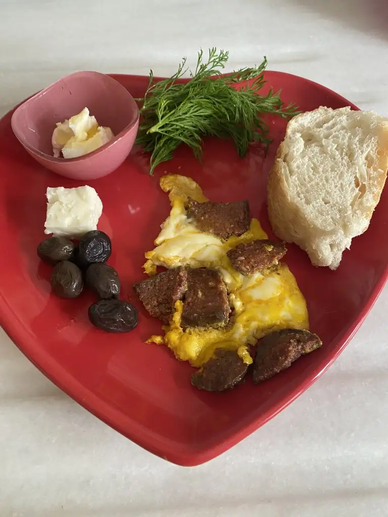 kasarli tost, zeytin,yeşillik, 2 fıstık ezmeli pestil