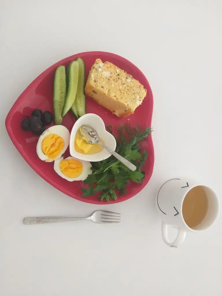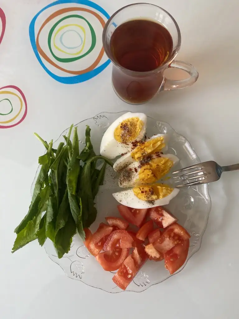 1 sahanda salçalı yumurta, 7 zeytin, 2 dilim tam tahıllı ekmek, 2 ceviz, 1 tatlı kaşığı ballı fındık ezmesi, 2 hurma