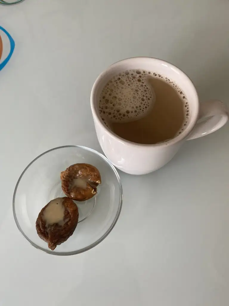 2 Brezilya cevizi, 5 Siirt fıstığı, 1 hurma topu, 3 yemek kaşığı granola ve yarım su bardağı süt
