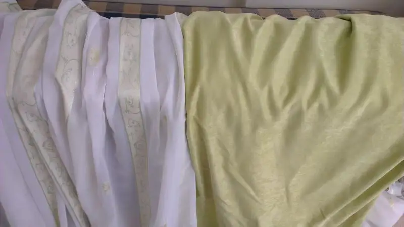 Tül perde de var ama ebatını bilmiyorum, Mersinde annemin evinde duruyor ilgilenirseniz ölçtürürüm. Tahmini 3 m enindedir. Sağ sol olmak üzere fıstık yeşili iki tane fonu var. Resimde sarı gibi çıktığına bakmayın tam fıstık yeşilidir. Tül ve fonlar 150 TL