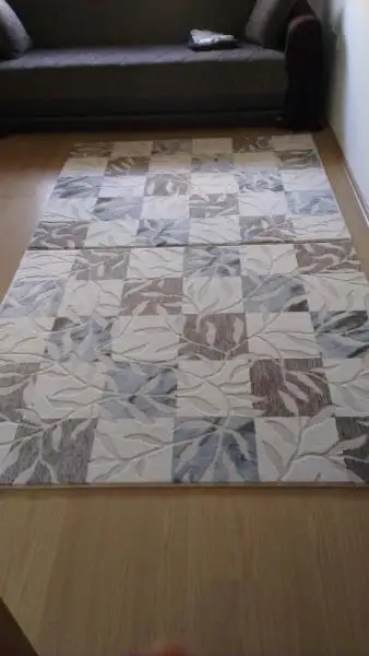 Merhaba, bende aşağıdaki halı var. Kullanılmayan bir misafir odasında duruyor. Merinos markası. Alırken ikiye böldürmüştüm çünkü çapraz kullanmayı planlamıştım ama odanın şeklini değiştirinceyine ortaya birleşik olarak serdim. Yumuşacık ve soft renkli. 120 TL