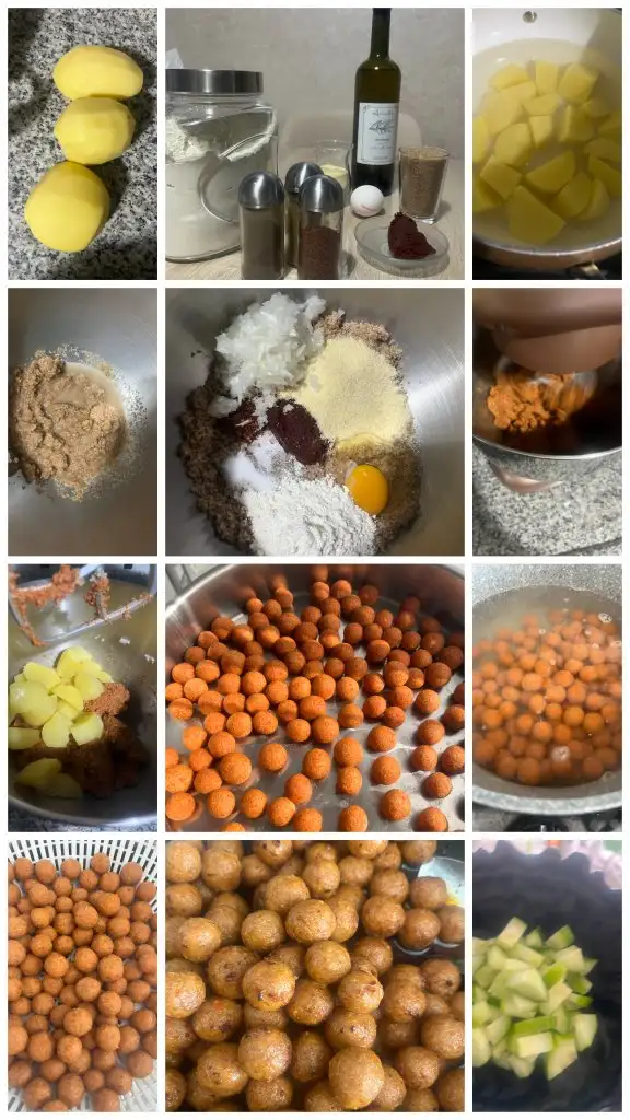Yapılışı: Patatesleri haşlayalım. Köftelik malzemeleri karıştırıp yoğuralım. Patatesi dikkatli şekilde yavaş yavaş ekleyelim, haşlama seviyesine göre köftenin istediği miktar değişebilir. Yoğurmaya devam edelim. Köfteyi fındıktan büyük toplar şeklinde yuvarlayalım. Kaynar suda 5 dakika pişirelim. Sonra kızdırdığımız yağa alıp 2-3 dakika kavuralım. Cacığı yapıp üzerinde servis edelim.