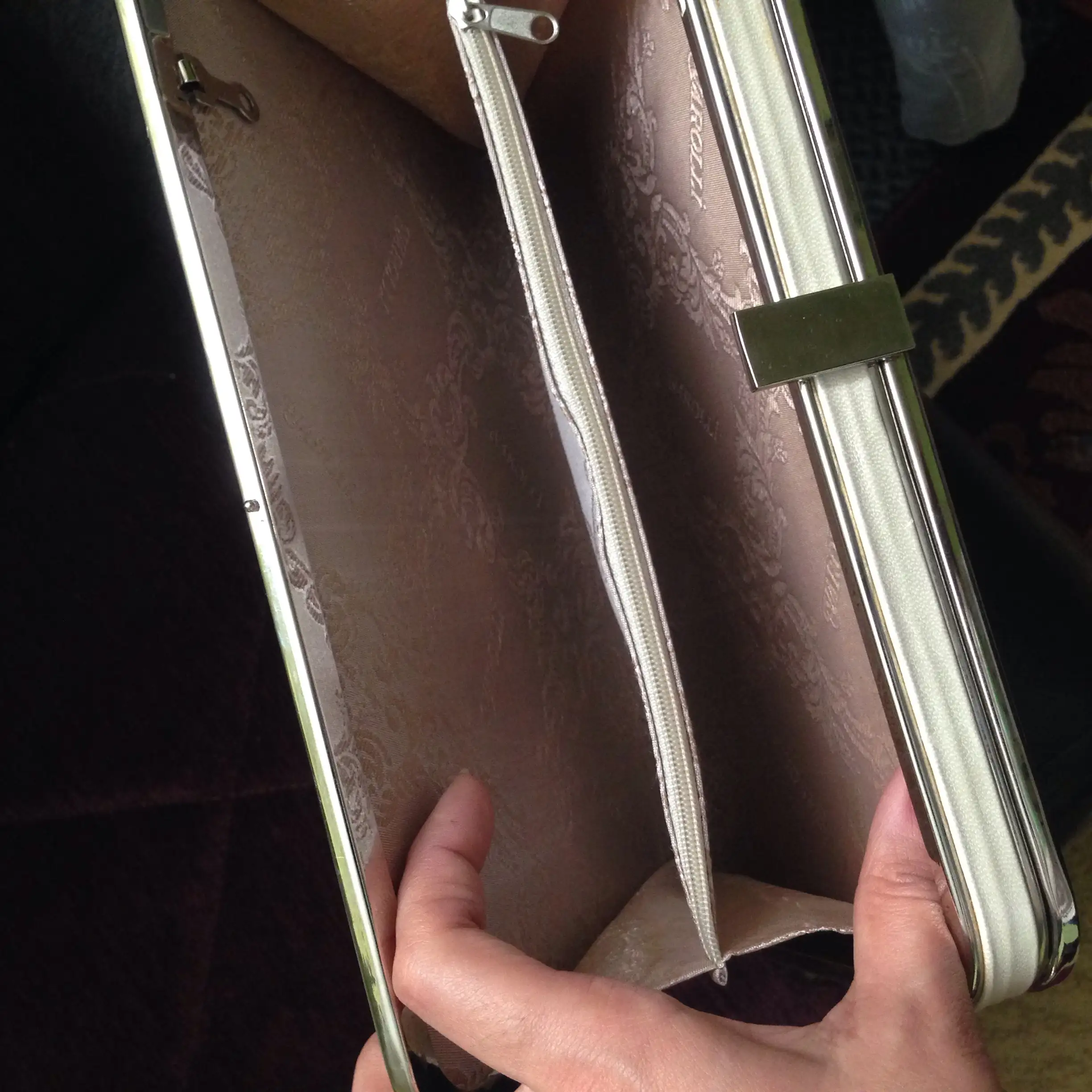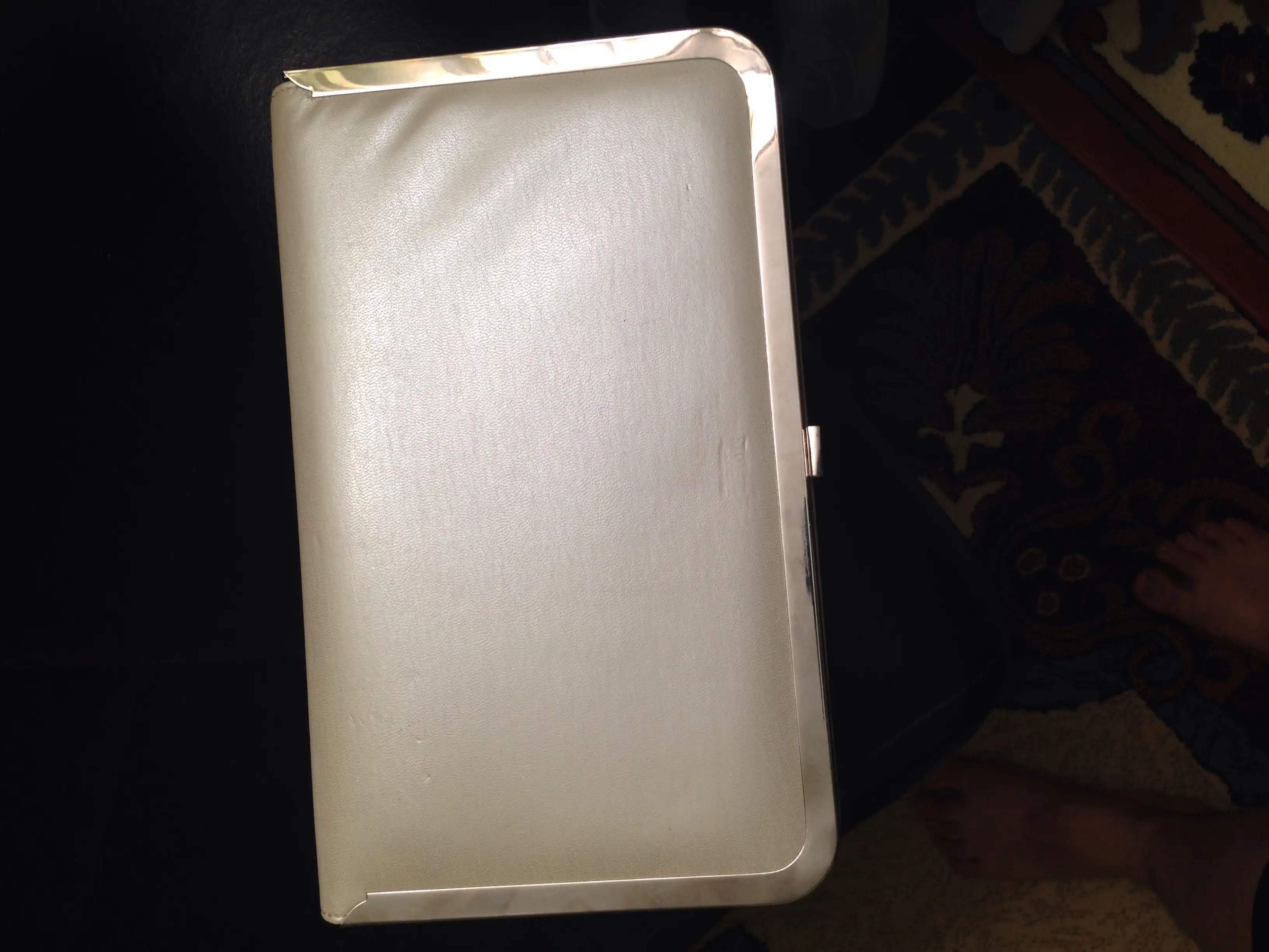 bende de bu varEki Görüntüle 1264585 Eki Görüntüle 1264588 Portföy çanta çok şık kemik rengi kenarları metal şeritle döşenmiş fiyatı 35 tl