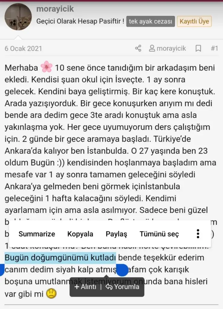 İşsiz misin dersen hayır değilim, mutsuzum. Gece stresten uyuyamiyordum, kafam dağılsın diye eski mesajlarına baktım. Yaşını hesaplamaya çalışırken uykum geldi. Bu konuda teşekkür borçluyum![]()