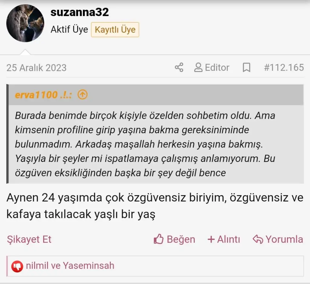 Yaş kompleksim yok demişsin ama görüyoruz kj var yani.