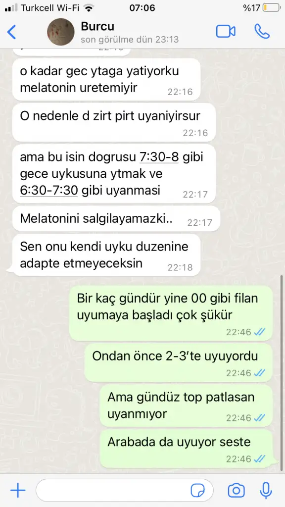 Kızımı bu saatte uyanık tutarak, onla oyun oynayarak çok büyük kötülük yapıyormuşum. Bebeğimi ne olursa olsun akşam 20’den sonra aydınlık ortama çıkarmayacakmışım, onu oyalamak için oyun oynamayacakmış. Bebeğim melatonin salgılayamıyormuş bu sebeple.