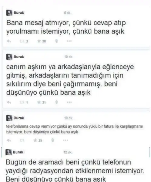 Bu övmek mi oluyor?‘’ohaa benim ki bacaklarımı kırar, gerekirse eve götürür üzerimi değiştirir yine de öyle gezdirmez , çok kıskançtır çok sevgisinden bu’’