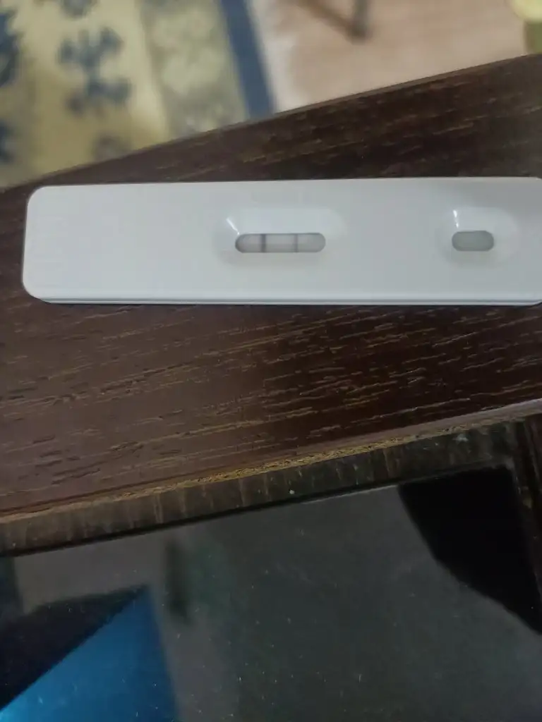 Sizi üzmek istemem ama o erken gebelik testi pozitif değil, o silik çizgi test çizgisi değil çünkü. Umarım hamilesinizdir ama bu test silik çıktı diye inanıp bel bağlamayın. Bakın benim son gebeligimde ovulasyon testi aynen sizinki gibiyken erken gebelik testi böyleydi. Ve iki çizgi arası mesafe bu kadar.