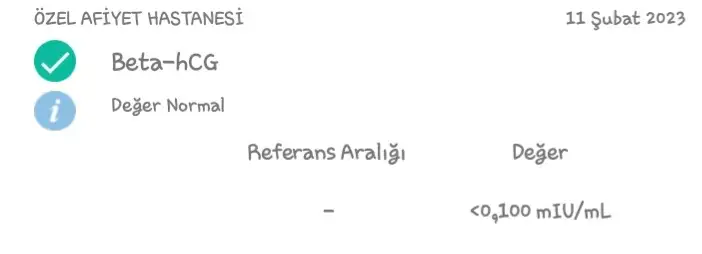 Arkadaşlar ben 8-9 aylık evliyim 40 gün geciktim en son adet tarihim 29.11.2022 25 gün önce kaset test yapmıştım hatta paylaşmıştım burda silik çizgi çıkmıştı doktora gittim ultrasonla baktı ne kese nede kist var tertemiz dedi folic asit verdi onu kullanıyorum kan tahlili verdim sonuç 0.1 negatif çıkmıştı dün yine kaset test yaptım yine silik çizgi çıktı bu sefer özel hastaneye gittim ultrasonla baktı bişi göremedi kan tahlili yaptırdım sonuç 1.100 çıktı bana negatif dedi adet söktürücü verdi bende eve gelince araştırdım gebelik yeni olduğu için düşük HCG değeri diyor Mart'ta kadar bekleyip bidaha kan tahlili yaptırmayı düşünüyorum eğer ozamanda yoksa adet söktürücü ilacı kullanıcam sizden ricam 1.100de gebelik varmı yok mu varsa eğer kaç günlük yada 1-2 haftalık mı gebeliğim bide gebelik belirtilerim var hemde nerdeyse bütün belirtiler bende bulunmakta bide sol kasığım çok ağrıyor midem ekşime yapıp basım dönüyor sürekli lütfen cevap verirseniz sevinirim şimdiden teşekkür ediyorum