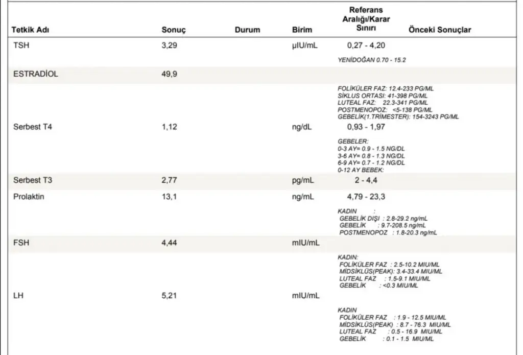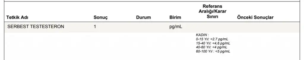 Merhaba yeni gördüm msjı çok teşekkür ederim birde serbest testosteron diye Bi sonuç geldi kaç olması lazım bu değerin bilginiz varmı acabaBunlar Adetin 3. Günü tahlilleri ise gayet normal görünüyor