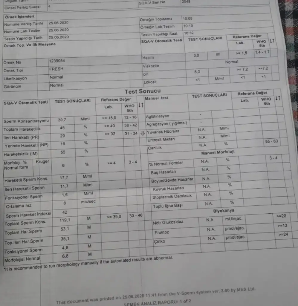 Arkadaşlar eşimin sperm sonuçları anlayanlar yardımcı olabilir mi?