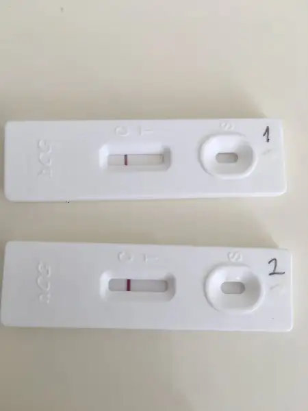 Kızlar selam. dunden beri içim içimi yiyo 5 ağustosta kimyasal gebelik geçirdim ve bu tarihe kadar hasta olmadım aslında kimyasaldan sonra adet gecikmesi normal ki benim oncesinde de duzensizdi adetlerim. Bikaç gundur adet olucam gibi hissediyorum kasıklarım belim agrıyo halsizlik falan var. Adet olamayınca hamilemiyim acaba diye duşunup dun ve bugun idrar testi yaptım ve ikinci çizgi ikisinde de çok silik çıktı. Kafam allak bullak kimseye soyleyemiyorum başımdan geçen kimyasaldan dolayı tekrar umitlenmekte istemiyorum. Testlerin fotosunu yuklicem bide siz bakın çizgiyi gorebilecekmisiniz?