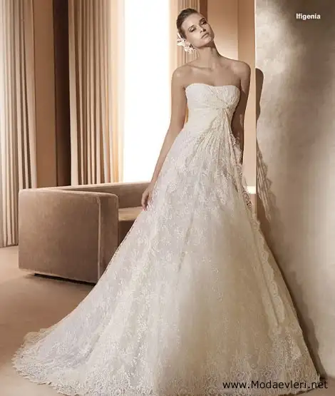 Gidin gelinlikleri deneyin. Üzerinizde görün. Aşağıda diktirmek istediğim