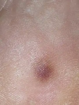 Fotoğraf çok küçük bir alanı gösterdiği için bir şey belli olmuyor ama dışarı çıkık bir yapısı yoksa ben olabilir, değilse, sert bir cismin üzerine bastıysanız içeride ufak bir kanama olmuş olabilir. ağrı ya da sancılıysa mutlaka semt polikliniğine gidin, aile hekiminiz sizi doğru hastane ve bölüme yönlendirir.