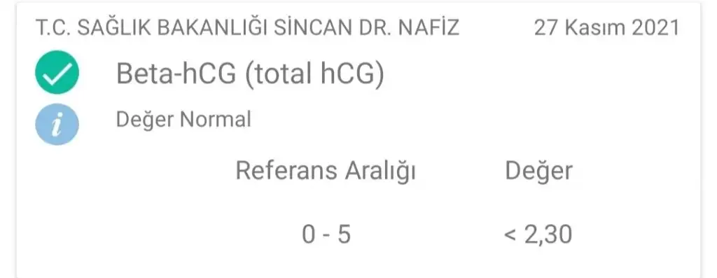 Degeriniz 2,3 çıkmamış. 2,3'ten küçük çıkmış. Bana kuruma çizgisi gibi geldi. Adet gormemeye devam ederseniz testleri tekrarlayin. Beklemeniz gereken süre dolunca testlere bakmayin.