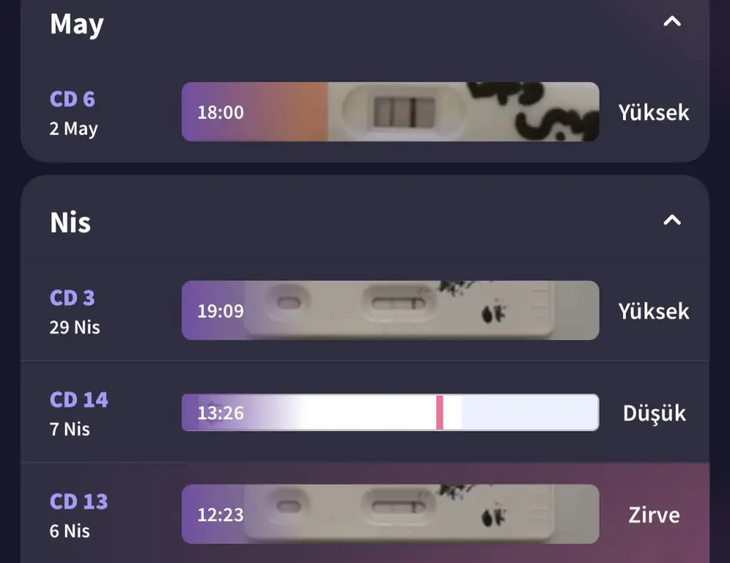 İlk 2 ay bir yerden ovulasyon testi aldım bana bozuk gibi geldi sürekli iki çizgi çıkıyordu veya koyulaşmıyordu felan yumurtlama gününü bulamadım yani.
