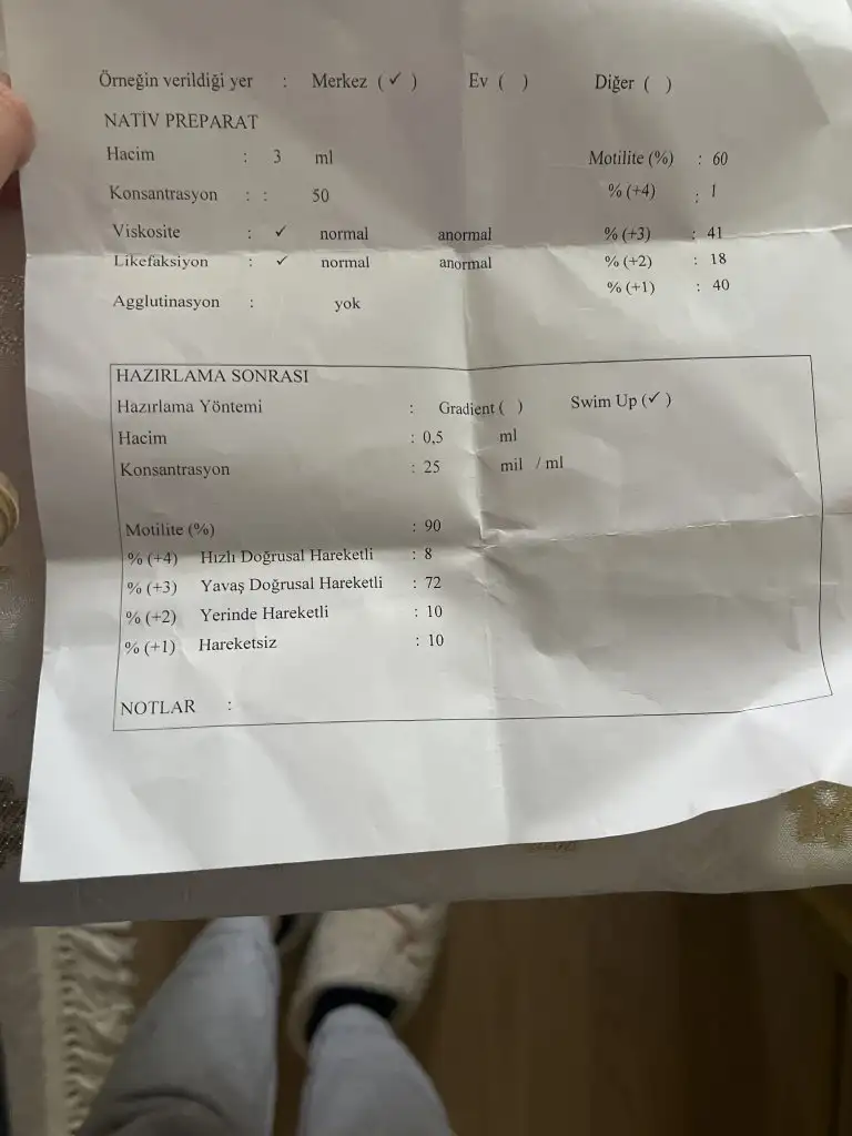 Canım ben hiç anlamıyorum spermiyografi sonucundan. Biz de doktorumuza danışarak iyi olduğunu öğrenmiştik. Biraz hesaplamaları falan farklı oluyor yanlış yönlendirmeyim 😍