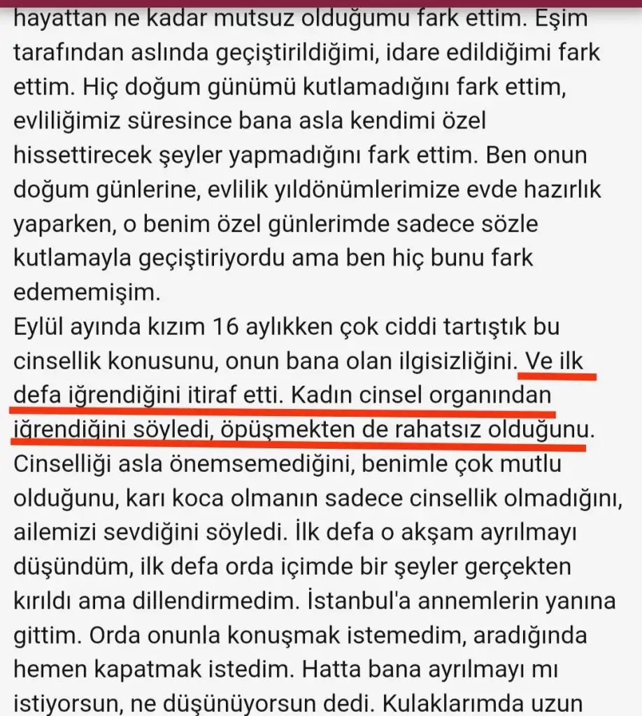 Bir konu daha vardı, oral istiyor fakat kendi yapmıyormuş ve öpüşmek istemiyormuş. Onun da erken boşalma sorunu varmış. Bulunca link atayım size.