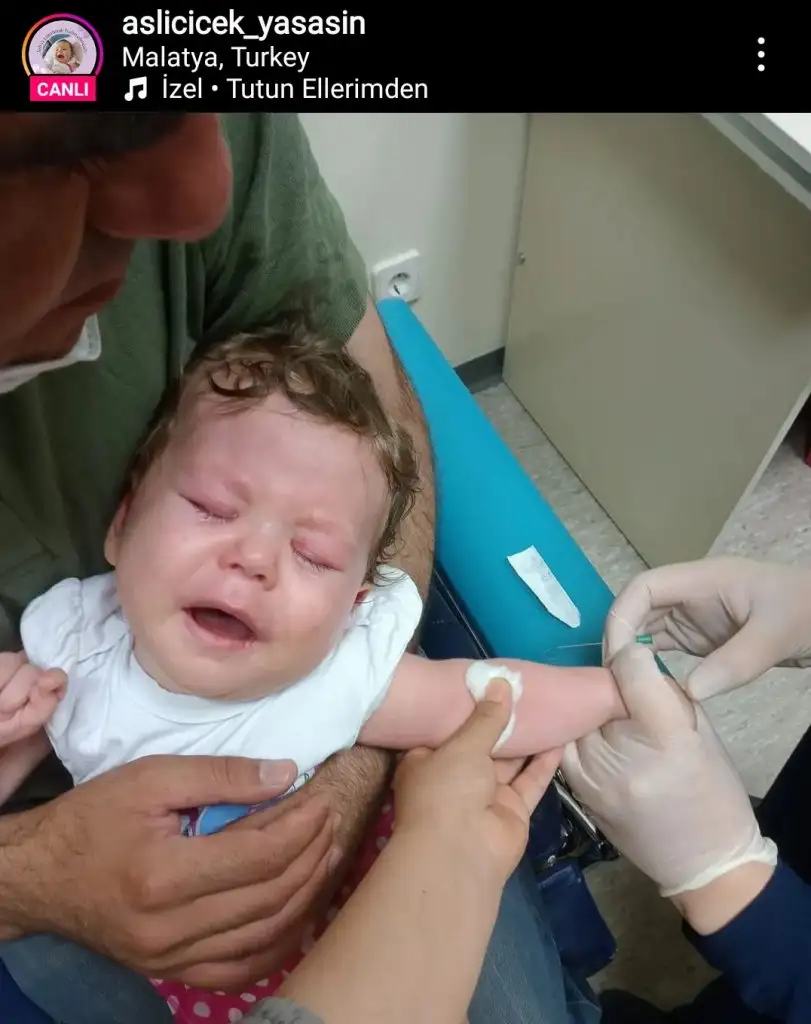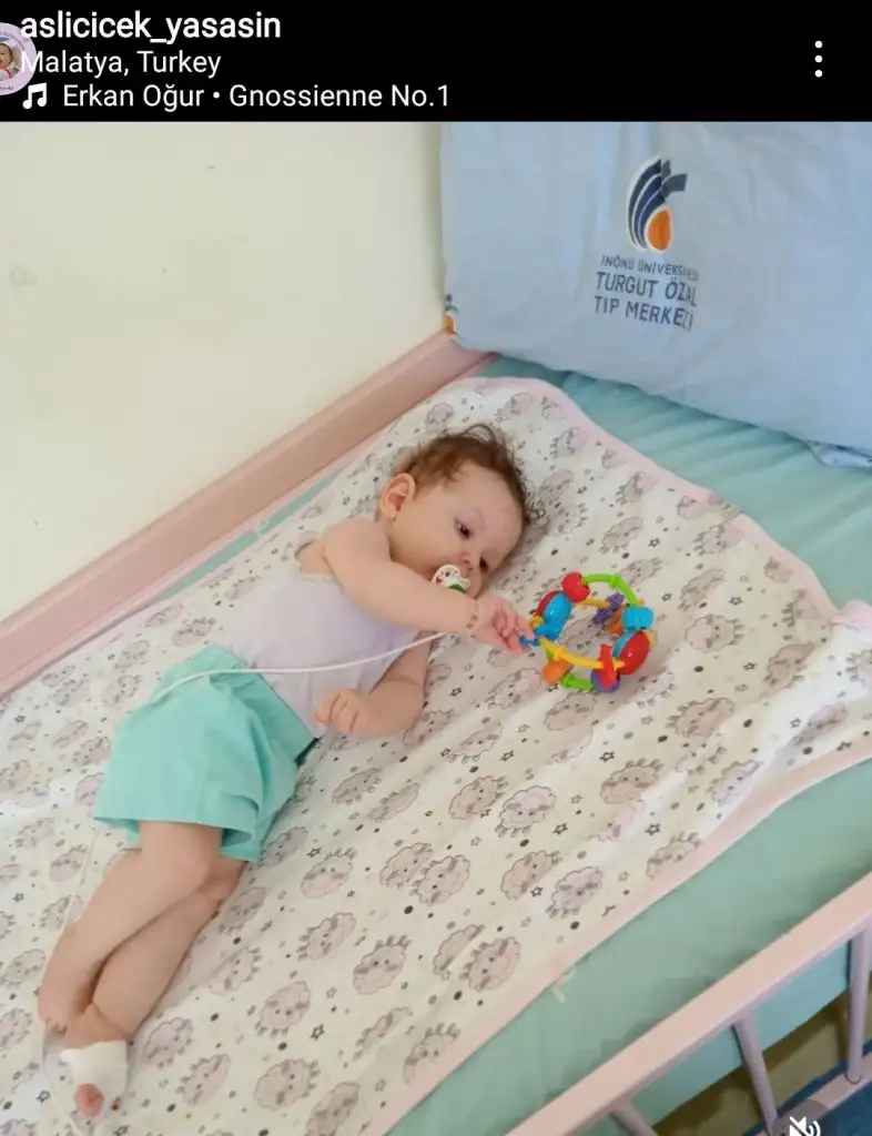 Aslı bebek 9,5 aylık SMA tip 1 kas hastasi, Malatya'nin bir köyünde yaşıyor, kışın yol, ulaşım zorluğu, elektrik kesintileri gibi sorunlar oluyor. Dün gece fenalasti hastaneye kaldirildi, solunum zorluğu çekiyor nefes alamıyor, ateşi yüksek, hastalık ilerliyor, bu meleğin güzel yüzünü soldurmayalım, bizim de evlatlarımız var bizim de basimiza gelebilirdi Allah göstermesin, anne baba nöbetleşe uyuyor, gece gunduz başında bekliyor bebegin 😓