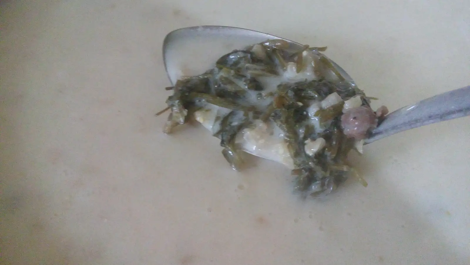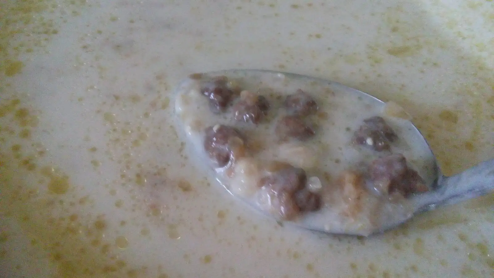 Kaynamaya yakın köfte ve soğanlarımızı çorbaya ekliyoruz kaynayınca içine salamura aşotumuzu ekliyoruz.Tuz eklemiyoruz çünkü aşotumuz salamura olduğu için tuzlu oluyor.Sonra tadına bakıp ilave edeceğiz.