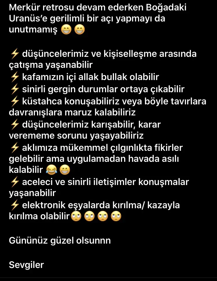 Pofu Hanım size merak ettiğim birşey sorabilir miyim?Merkür akrepte retrosuna devam edyr, uranüs boğada, gelsen retro merkür uranüse çattt gerilimi açı ver buyrun sonuçları