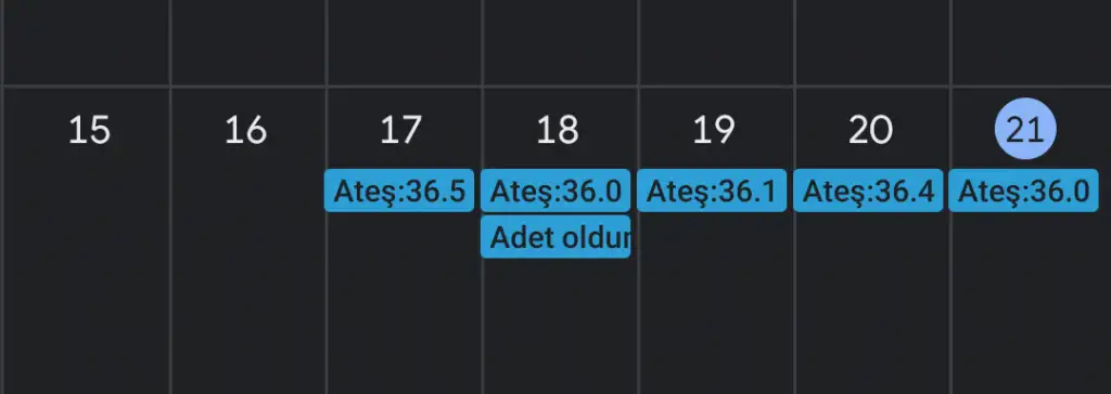 Aynen bende 6.gün yıkanırımAynı gidiyoruz seninledefter yerine takvime yazıyorum böyle daha kolayıma geliyor sabah uyanınca ilk elime aldığım şey termometre senin adetin azaldı mı?