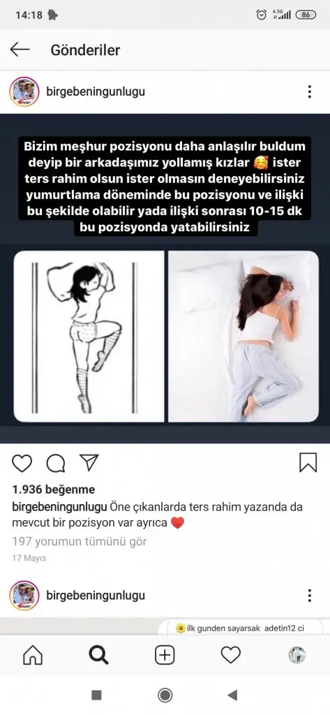 hatta ıste bu ay ters yattıgımı gorunce tekrar baktı. normalde ayaklarımı duvara dayıyıroum bı kac dakıka cunku