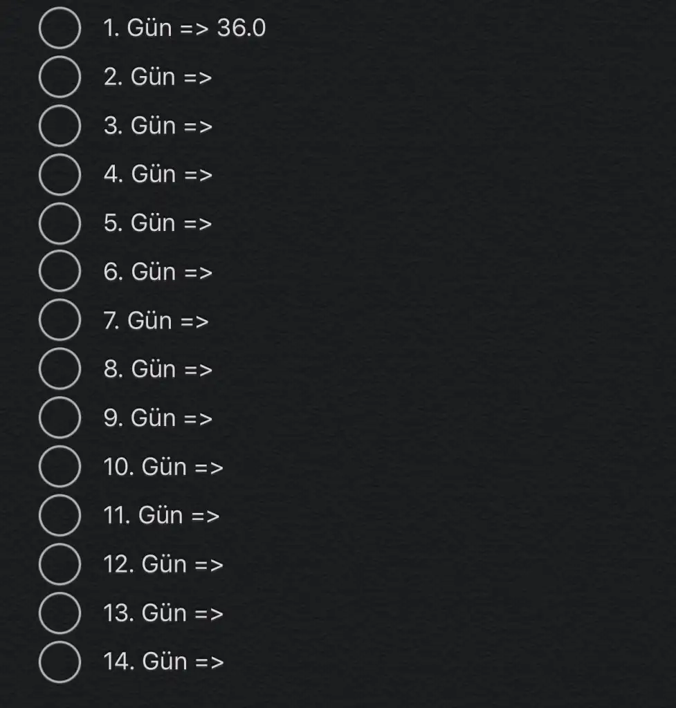 M miraleyn Desteğinde çok hoşuma gidiyor gerçektenheyecanlı bir öğrenci gibi hemen dosyamı hazırladım, ilk ölçümümü de yaptım (şimdi ölçtüm ama ne yapalım, akşam üstü regl oldum)