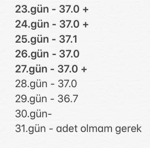 Çok teşekkür ederim dusuncelerin icin peki adet olacagımızı 2 gun onceden mi öğreniyoruz vucut ısımız duşunceCanım yıpratma kendini lütfen . Az kaldı öğrenecez. Adet dereceni de bilmiyoruz o yüzden hiçbirşey düşünemiyorum ama adete 1 gün kala ateşin düşer en kötü adet günü eğer olacaksan tabi. Eğer düşmezse hamile olabilirsin ve test yaparsın