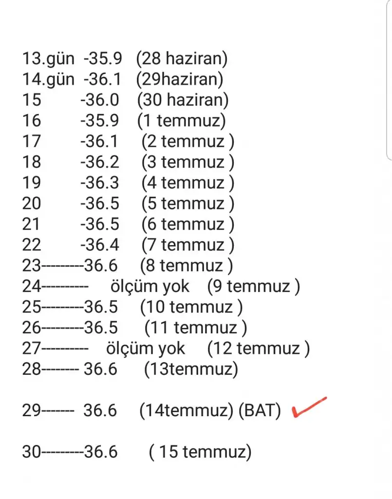 Güncelleme için geldim, bugün 0.2 derecelik bir artışım var, tahmini yumurtlamama 7-8 gün olduğu için değersiz bir artış sanırım bu.