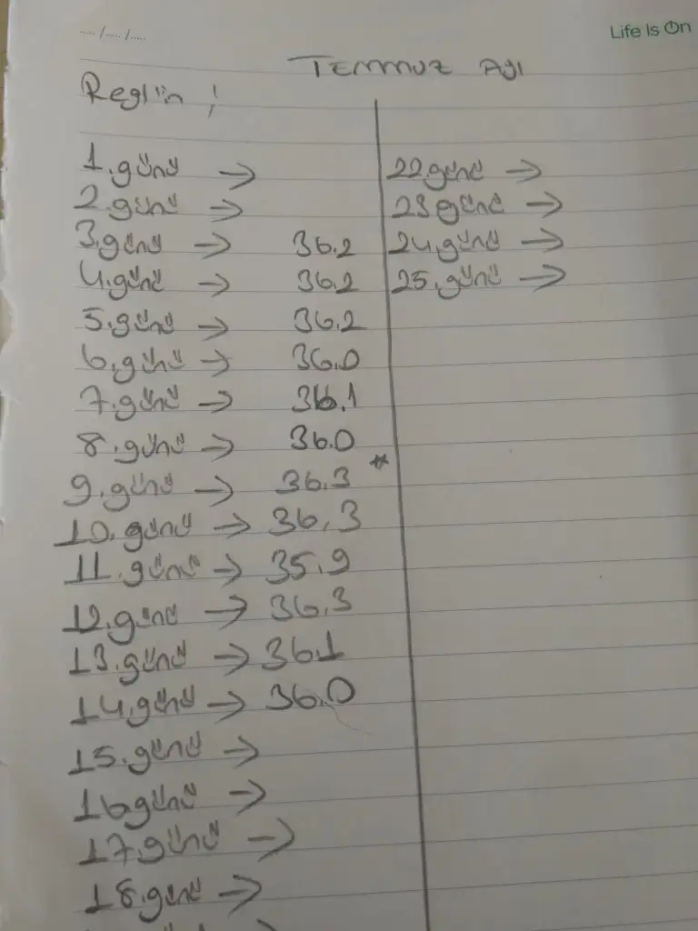 Anladım. Dediğim gibi ateşinin sabit ve yüksek olması gerekiyor. Hatta tahminimce adet günü öncesi hamişsen eğer bu 36.3 değil de en az 36.6 ve daha yüksek bir değer olur 😉