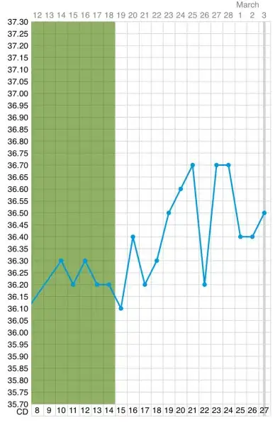 Geçmiş bilgilerini bilmiyoruz.döngün kaç gün genelde?hiç akıntı,ovü testi falan yok mu?ayrıca her gün aynı saatte ölçtün mü?Bıgün test yaptım canım ama negatif gösterdi