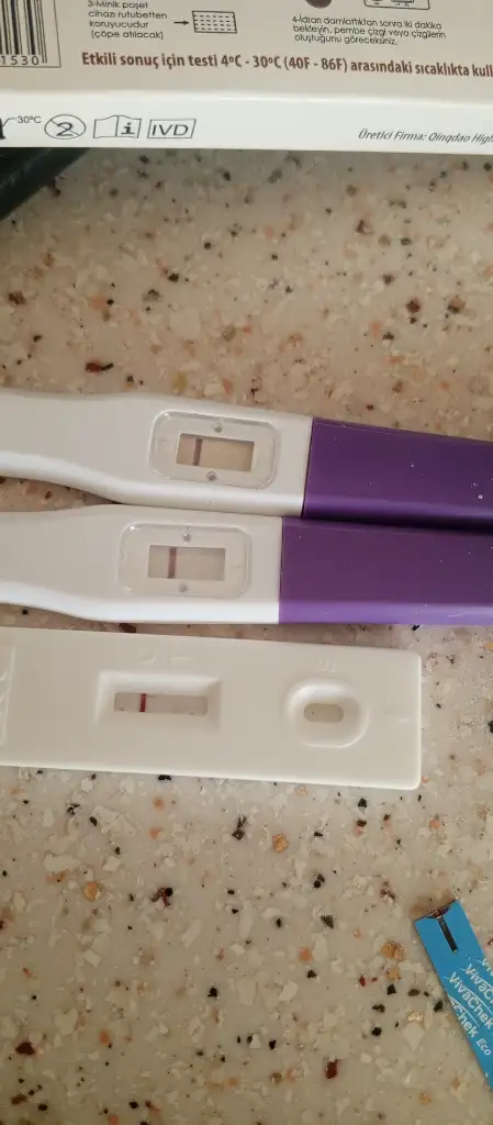 Ne kadar sürede çikti çizgiBenim testlerim de bu. Belli olan bugun yapildi, silik olan dunden onceki gun. Silik olanda kan testimde çıkmadı ama bugunku test baya belirgin sizce neden boyle olmustur var midir gebelik