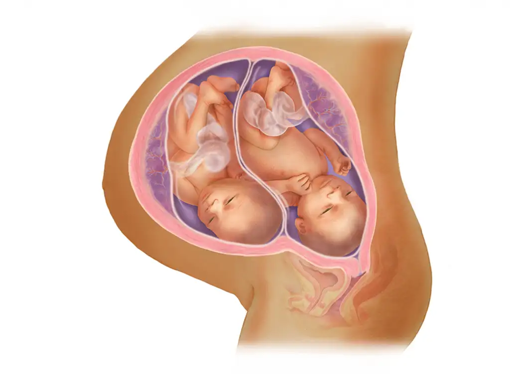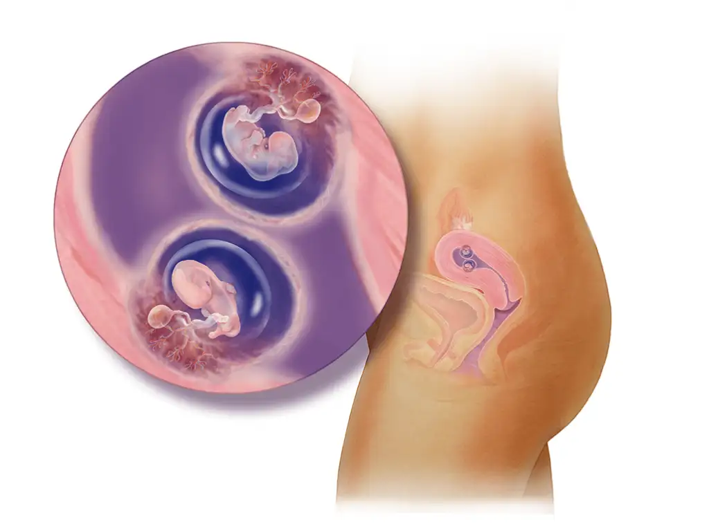 ikizler, iki ayrı döllenmiş yumurtadan gelişir. 6. haftada kalpleri atmaya başlar ve 8. haftada tüm ana organları gelişmeye başlar . İkizlerin yüzleri 12. haftada kapalı göz kapakları ile şekillenir ve 16. haftada cinsel organları belirginleşir. 24 haftada yağ depolamaya başlarlar ve kan hücreleri yapmak ve akciğerlerini geliştirmek için çalışırlar. Takip eden haftalarda bebekler büyümeye devam eder ve vücut ısılarını kontrol etmeyi öğrenirler. İkizler için ortalama doğum haftası 36 haftadır ve o zamana kadar tüm vücut sistemleri çalışır durumdadır.