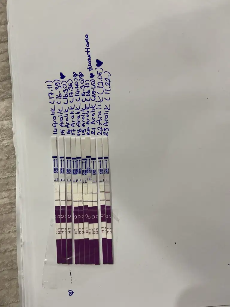 Son 3 değilde son 2 test pik duruyor 21inde olan çizgiler eşit durmuyor kuruduğu için öyle gözüküyor olsa dünkü olanda silik dururdu herhalde. Sperm sorunu yoksa bugünde değerlendirin. Birde havuç yiyin çatlama için