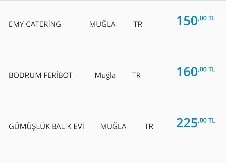 Gümüşlük balık evinde iki kişinin 4 saat oturup midesinde boş yer kalmayacak kadar yiyip raki içmesi (sarhoş olacak kadar değil,cakirkeyf olacak kadar) bize 225'e patlamış. Üstteki yer Datça'dan. Onda da alkolsüz lokantada arkadaşım balık,ben etli bir şeyler yemiştim, dondurma almıştık-meyve salatası ikram etmişlerdi. 150 TL ödeyip çıktık .