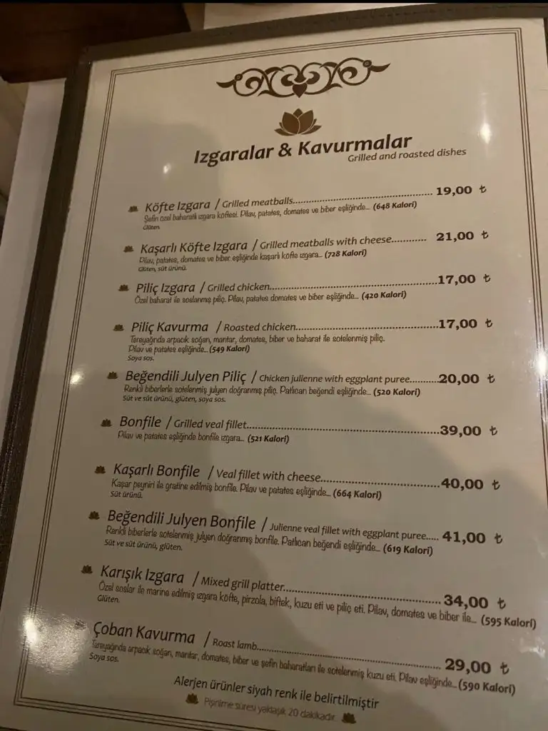 Menüye gelince ,bir fotosunu çekmiştim, ekleyeyim