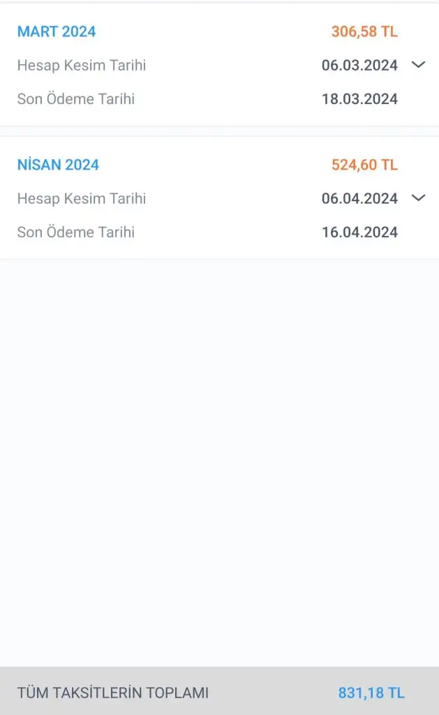 Kredi kartı harcamasının içerisinde 40 ton su parası 298 tl (4 ay yeter), dask ,bina vergileri ( ev ve dükkan ),oğlana alınan 3 tişörtün taksiti ,nevresim taksiti ,market ,kasap harcamaları var