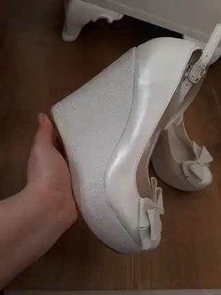 Aysira marka gelinlik 38 40 42 ye kadar olur. Kuru temizlemesi yapılmıştır. Boyum 1.65 topukliyla 1.70 civari olmustur.Duvakta ve gelin ayakkabisida verilir ayakkabı 38 numara.