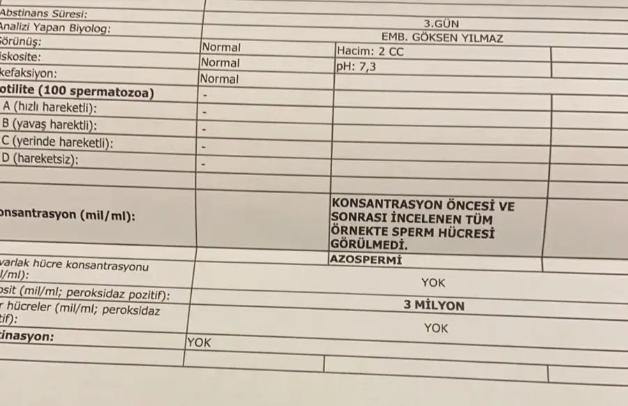 Arkadaşlar merhaba bugün eşimin azospermi olduğunu öğrendik. Çok üzgünüz. Ben hormon testlerim yapmıştım bende birşey yoktu. Bunun tam olarak ne olduğunu ne yapmamız gerektiğini tam bilmiyorum açıkçası. Bu bizim doğal yollardan çocuk sahibi olmamız için büyük bir engel mi. Bitkisel bir tedavisi var mı. Sağlıklı bir diyet bitkiler macunlar ile halledilebilir mi? Bunu yaşayan ama yinede çocuk sahibi olan arkadaşlarım bana biraz destek olup moral verebilirse yaşadıklarını anlatırsa çok sevinirim. Bana bir yol gösterir misiniz?