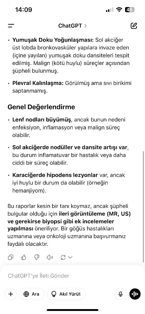 Panik yapmadan, en kısa sürede bir göğüs hastalıkları uzmanı veya onkolog ile görüşerek ileri tetkikleri yaptırmanız. Bu tür bulgular her zaman kanser anlamına gelmez, ancak dikkatli takip edilmesi gerekir.