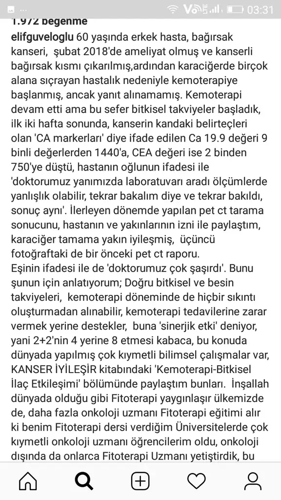 Sizin için iyileştirdiği bir hastanın hikayesinin ss ini aldım.1,5 yildir bu illetle mücadele ediyoruz. Mart ayinda doktor kemoterapinin ise yaramadigini hastaligin ilerlemeye devam ettigini söyledi. Tedaviyi birakabilirsiniz isterseniz dedi. Bizim israrimizla kemoterapi devam etti ve son kontrolde böbrege de sicradigi görüldü. Zaten son zamanlarda cok kilo verdi, hareket etmekte zorlaniyor. Onu kaybetmek istemiyorum. Ellerimizden kayip gidiyor adeta ve biz hicbir sey yapamiyoruz. Benzer seyler yasayan, doktor ya da alternatif tedavi önerebilecek olan var mi? Yarin da kontrolümüz var. Lütfen bize dua edin.